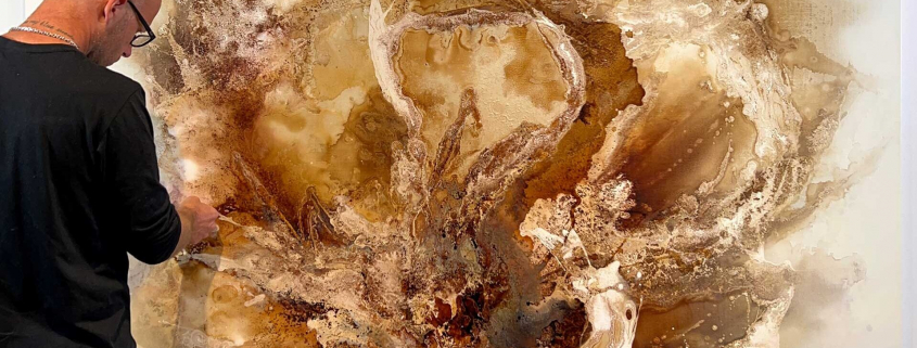 Su arte se caracteriza por grandes cuadros abstractos en tonos tierra. Tonos o motivos figurativos en blanco y negro, a menudo combinados con sus esculturas talladas en acero. Con diferentes estilos y elecciones de materiales, ha construido una amplia colección tanto en pintura como en escultura donde se enfoca en la sociedad moderna.