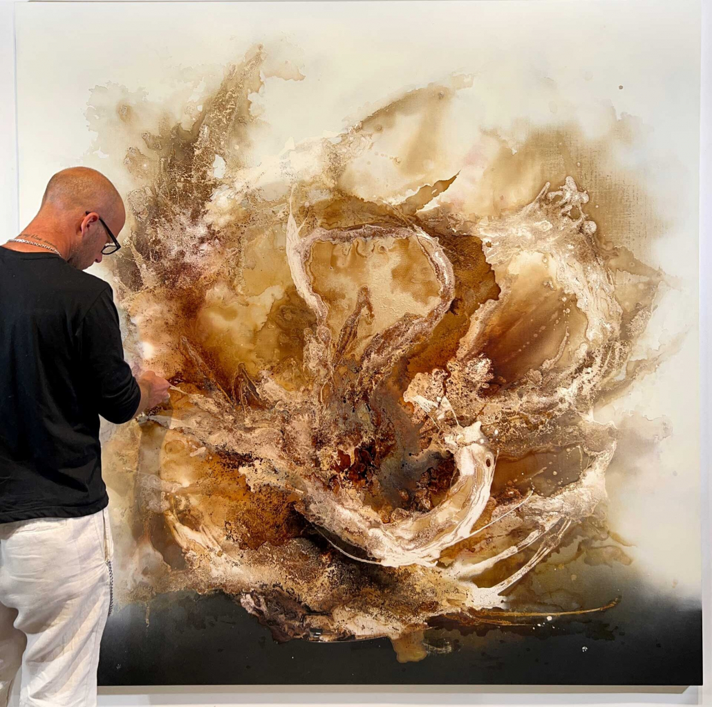 Su arte se caracteriza por grandes cuadros abstractos en tonos tierra. Tonos o motivos figurativos en blanco y negro, a menudo combinados con sus esculturas talladas en acero. Con diferentes estilos y elecciones de materiales, ha construido una amplia colección tanto en pintura como en escultura donde se enfoca en la sociedad moderna.